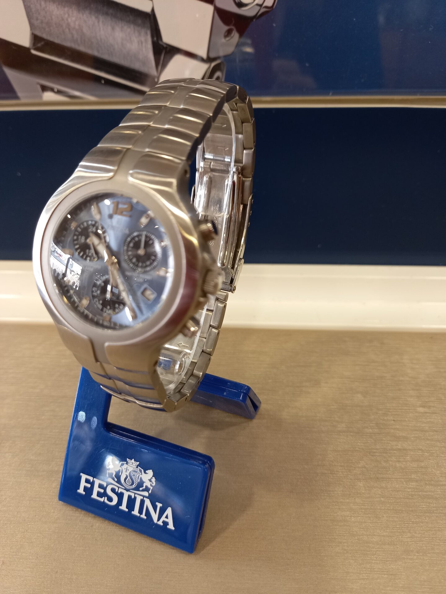 Ανδρικό ρολόι Festina Quartz, χρονογράφος, ατσάλινο, με μπρασελέ, γκρι καντράν, αδιάβροχο στις 10 ΑΤΜ. Δυο χρόνια εγγύηση στα μηχανικά μέρη,